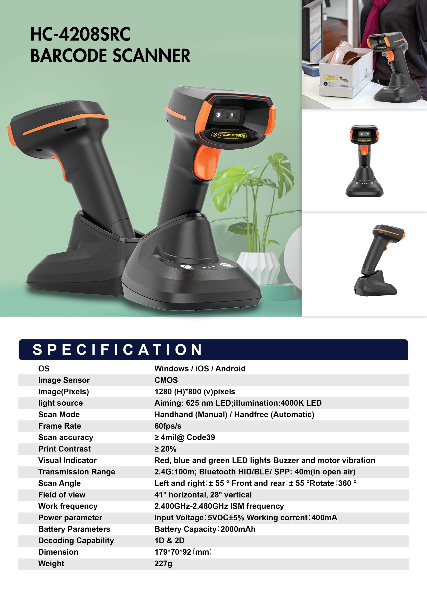 | Scan Mode | Handhand (Manual) / Handfree (Automatic) |