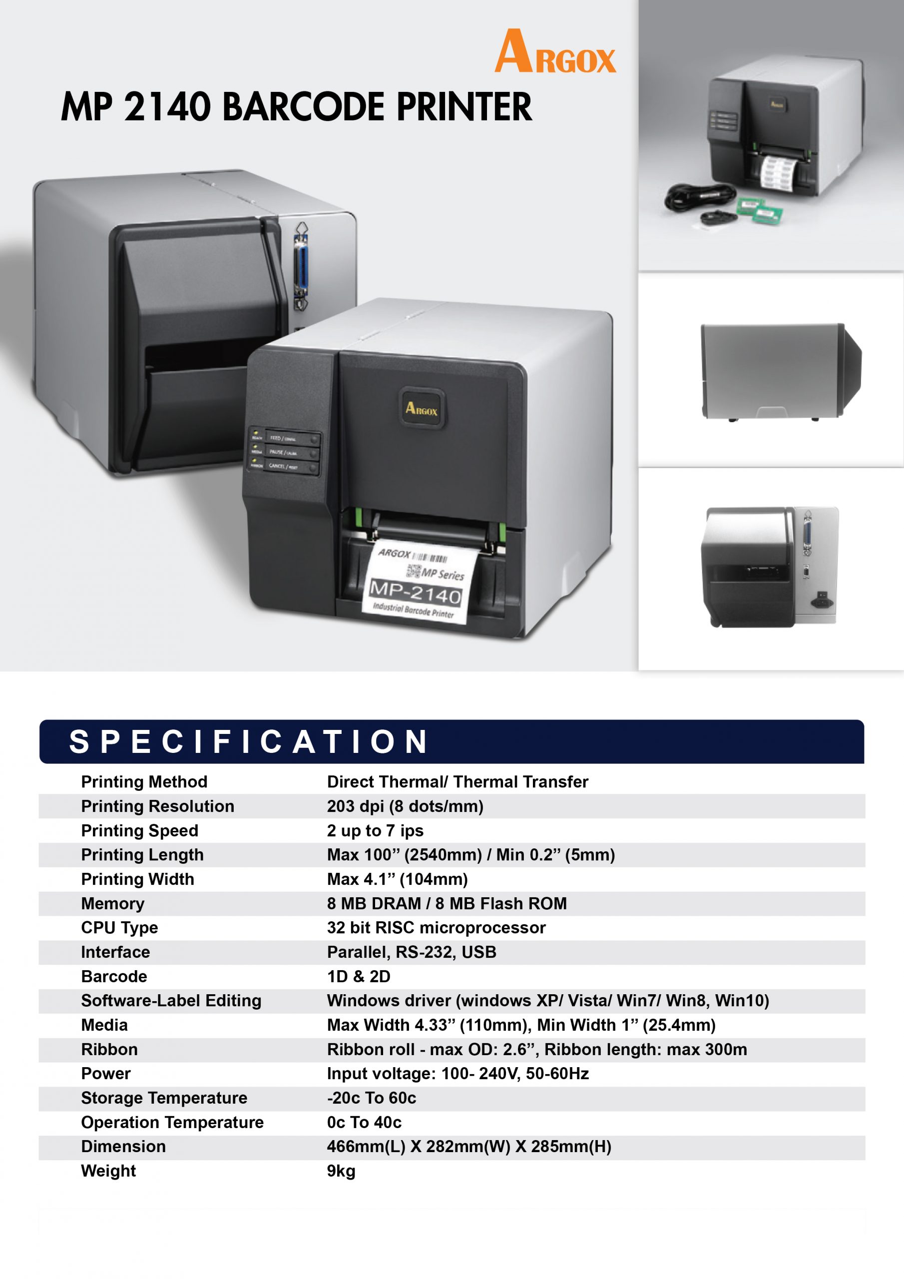 | Ribbon | Ribbon roll – max OD: 2.6’’, Ribbon length: max 300m |
