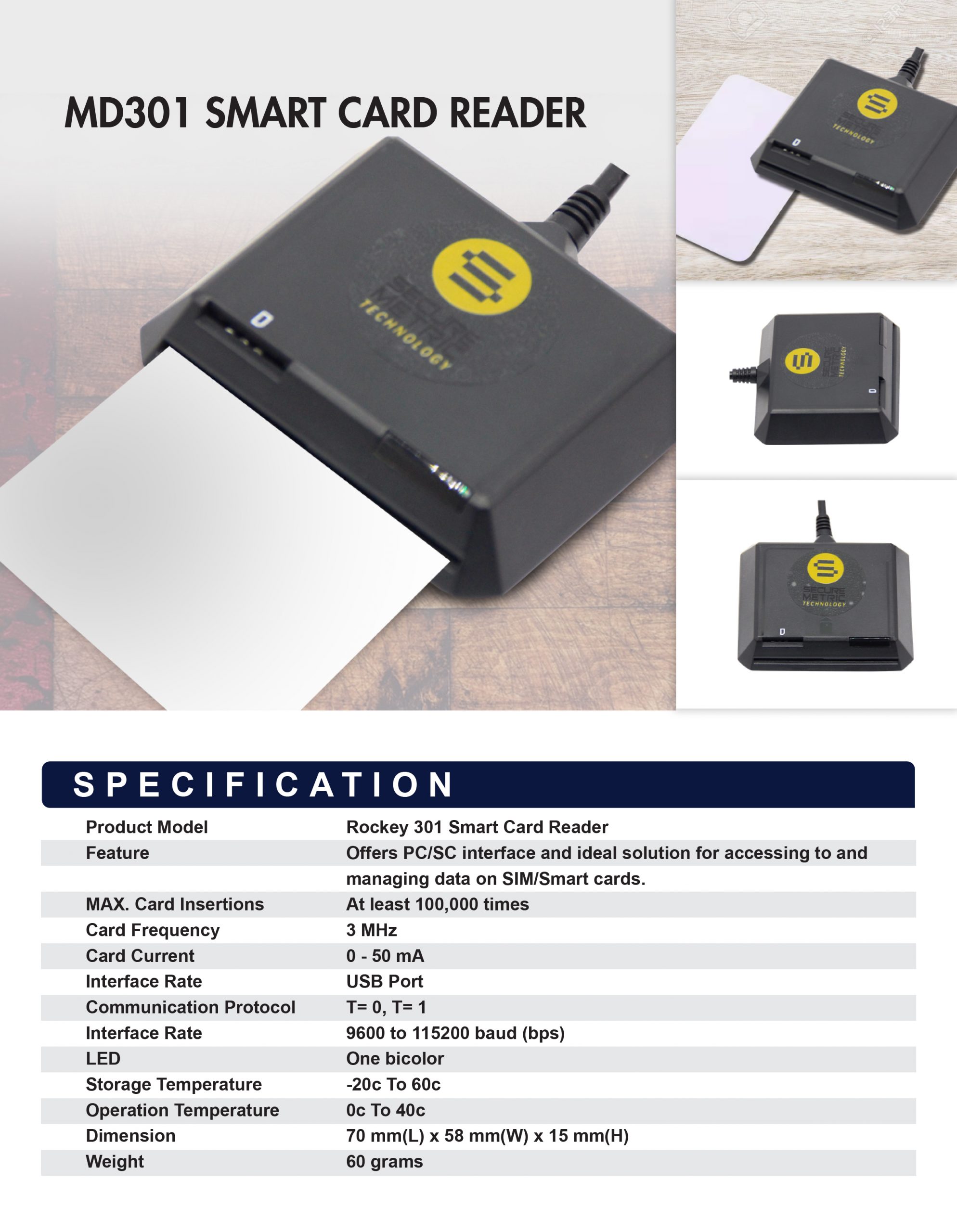 | Feature | Offers PC/SC interface and ideal solution for accessing to and managing data on SIM/Smart cards. |