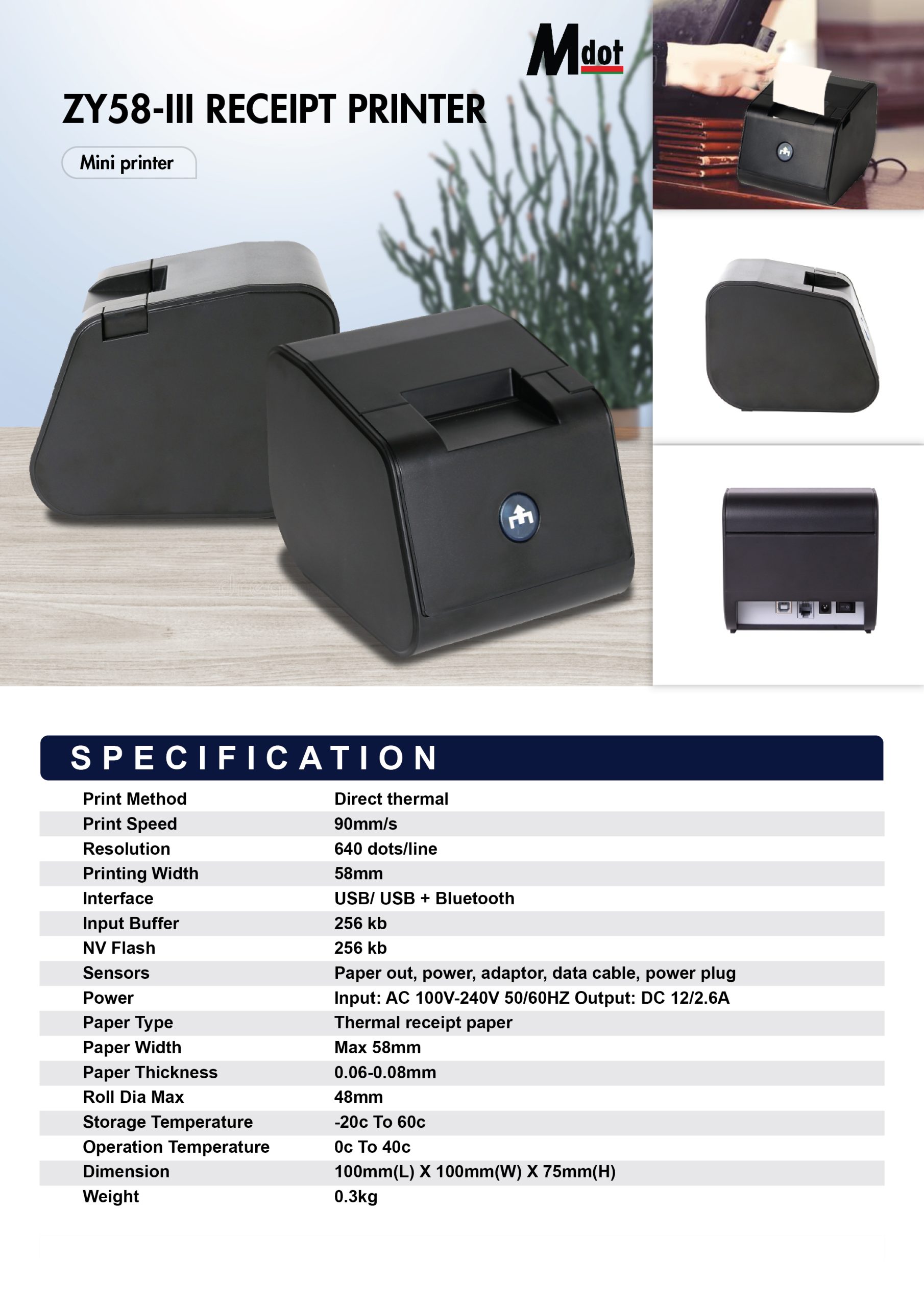 | Paper Width | Max 58mm |